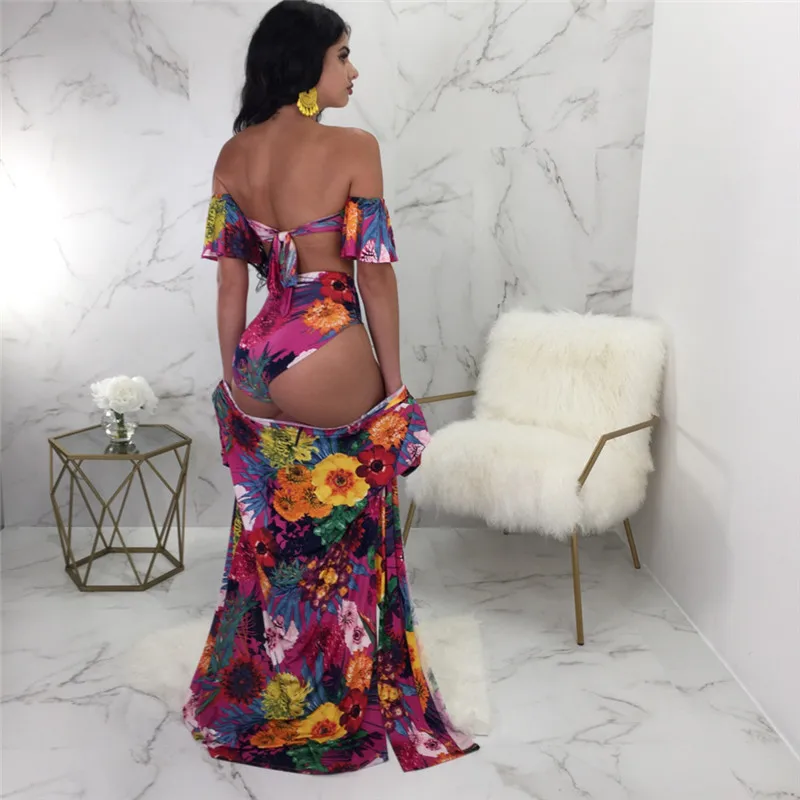 Best 2019 Sexy Summer Beach 3 Piece Set Women Strapless Crop Tops + Shorts + Cardigan Women Floral Print