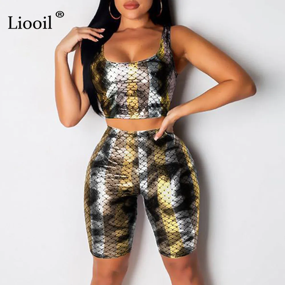 discounted Liooil Fish Scale Sequin Print 2 Piece Set Women 2019 High Elastic Top And Pants High Waist Two Pie