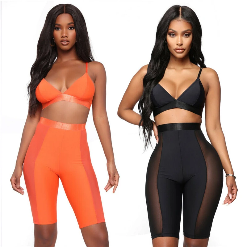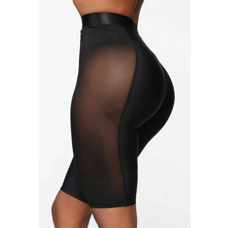 lower price New Women Biker Shorts High Waist Sexy Mesh Sheer Patchwork Slim Skinny Shorts Women Gym Jogger Str