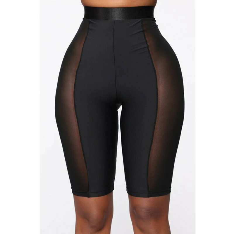 Very best New Women Biker Shorts High Waist Sexy Mesh Sheer Patchwork Slim Skinny Shorts Women Gym Jogger Str